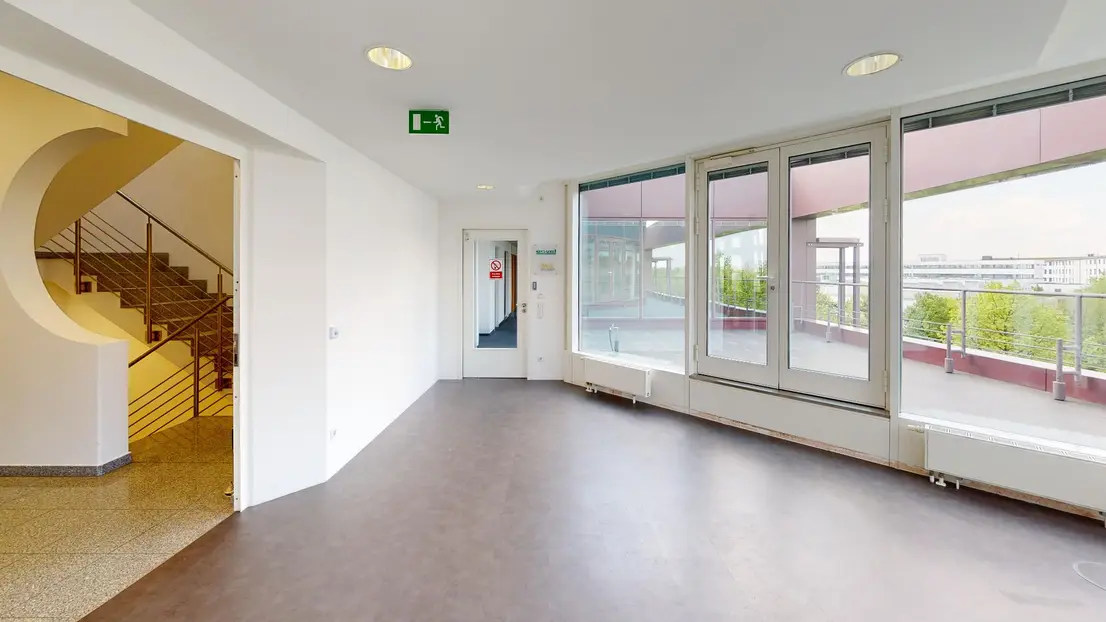 Die Büroimmobilie an der Valentin-Linhof-Straße 10 liegt im dynamischen Stadtteil Trudering-Riem in München. Die S-Bahn-Station München-Riem (S2, S4, S6, S8) ist etwa 10 Gehminuten entfernt, während die U-Bahn-Station Messestadt Ost (U2) in 15 Minuten mit öffentlichen Verkehrsmitteln erreichbar ist. Die Umgebung bietet eine angenehme Mischung aus Gastronomie und Infrastruktur: Das Restaurant Campiello überzeugt mit italienischer Küche und einem schönen Außenbereich, das Schmankerl Stüberl serviert traditionelle bayerische Gerichte, und das Die Machtbar begeistert mit moderner Bistro-Küche. Für die Kaffeepause eignen sich das Café ZimtZicke mit hausgemachten Kuchen oder das Kaffeekommando für ausgezeichneten Specialty Coffee. Nach Feierabend laden die Bar Monkey Bar mit kreativen Cocktails und die Weinwirtschaft Riemer Park mit einer hochwertigen Weinauswahl zum Verweilen ein. Die Nähe zum Ostpark bietet Raum für Erholung und Bewegung, während diverse Fitnessstudios und das Einkaufszentrum Riem Arcaden für den täglichen Bedarf und Freizeitaktivitäten sorgen – eine Lage, die urbanes Arbeiten mit Wohnqualität ideal verbindet.